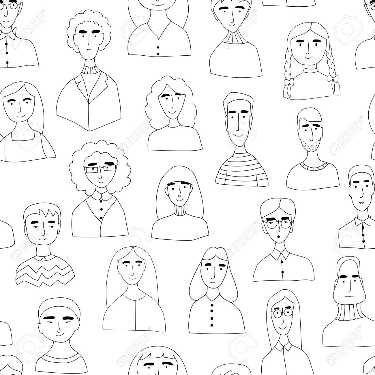 Black And White Coloring Book For Kids A Lot Of People Different Faces And Hairstyles Cartoon Men And Women Drawn By Doodle Hands Stock Vector Image Art Alamy
