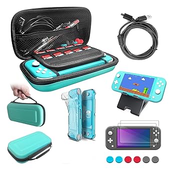 Amazon Com Orzly Switch Lite Accessories Bundle Case Screen Protector For Nintendo Switch Lite Console Usb Cable Games Holder Grip Case Headphones Thumb Grip Pack More Gift Pack Turquoise Blue