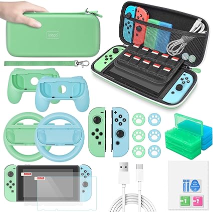 Amazon Com Accessories Bundle For Nintendo Switch Animal Crossing Meneea 26 In 1 Accessories Kit With Carrying Case Screen Protector Handle Grips Steering Wheels Silicone Case For Joy Con Headphones Thumb Caps