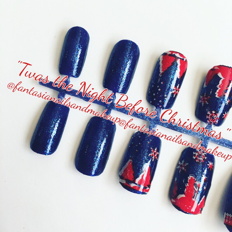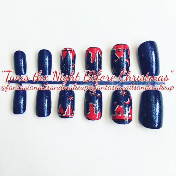 Dark Blue Christmas Holiday Nails Winter Snow Snails Square Etsy