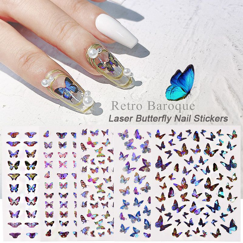 Nail Sticker Set For Nails Polish Decal Fluorescent Laser Butterfly Sticker Radium With Adhesive Aurora Decal From Caodou 28 31 Dhgate Com