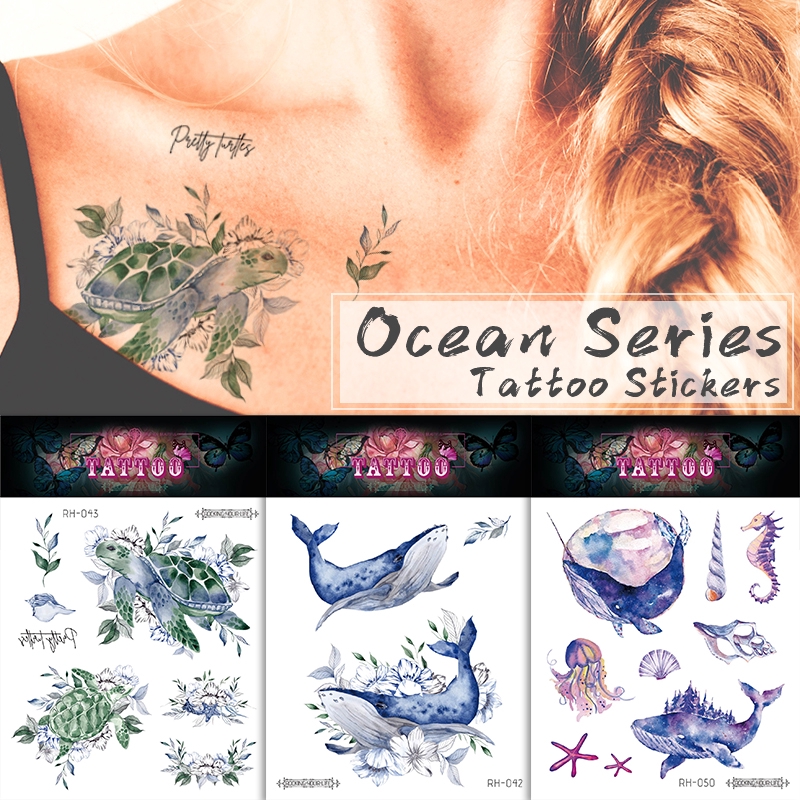 Waterproof Temporary Tattoos Kids Girls Flower Ocean Sea Whale Summer Tattoo Animals Water Transfer Wrist Tattoos Sleeve Hand Shopee Malaysia