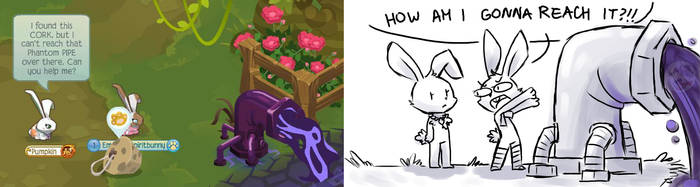 Return of the Phantoms is the first Animal Jam Adventure. You and your partners must defeat the phantoms and bring water back to the bunnies.